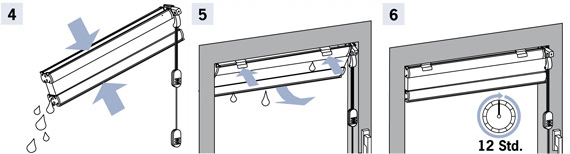 Während des Trocknens den Faltstore mehrmals öffnen und schließen, damit die Falten nicht verkleben.