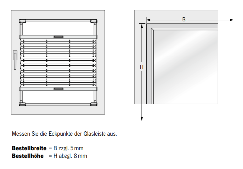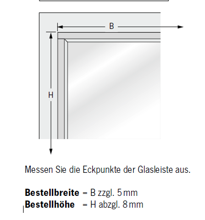 Bitte messen Sie die Höhe des gesamten Fensterflügels sowie die Breite der Fensterscheibe einschließlich der Dichtung. Die gemessene Höhe und Breite entspricht der Bestellhöhe und Bestellbreite.